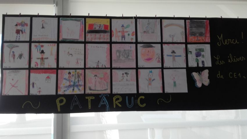 Ils remercient également, les élèves de la classe de CE1-CE2 et leur Maîtresse pour les dessins très expressifs réalisés par les enfants après le spectacle. Ils sont exposés actuellement dans la bibliothèque.